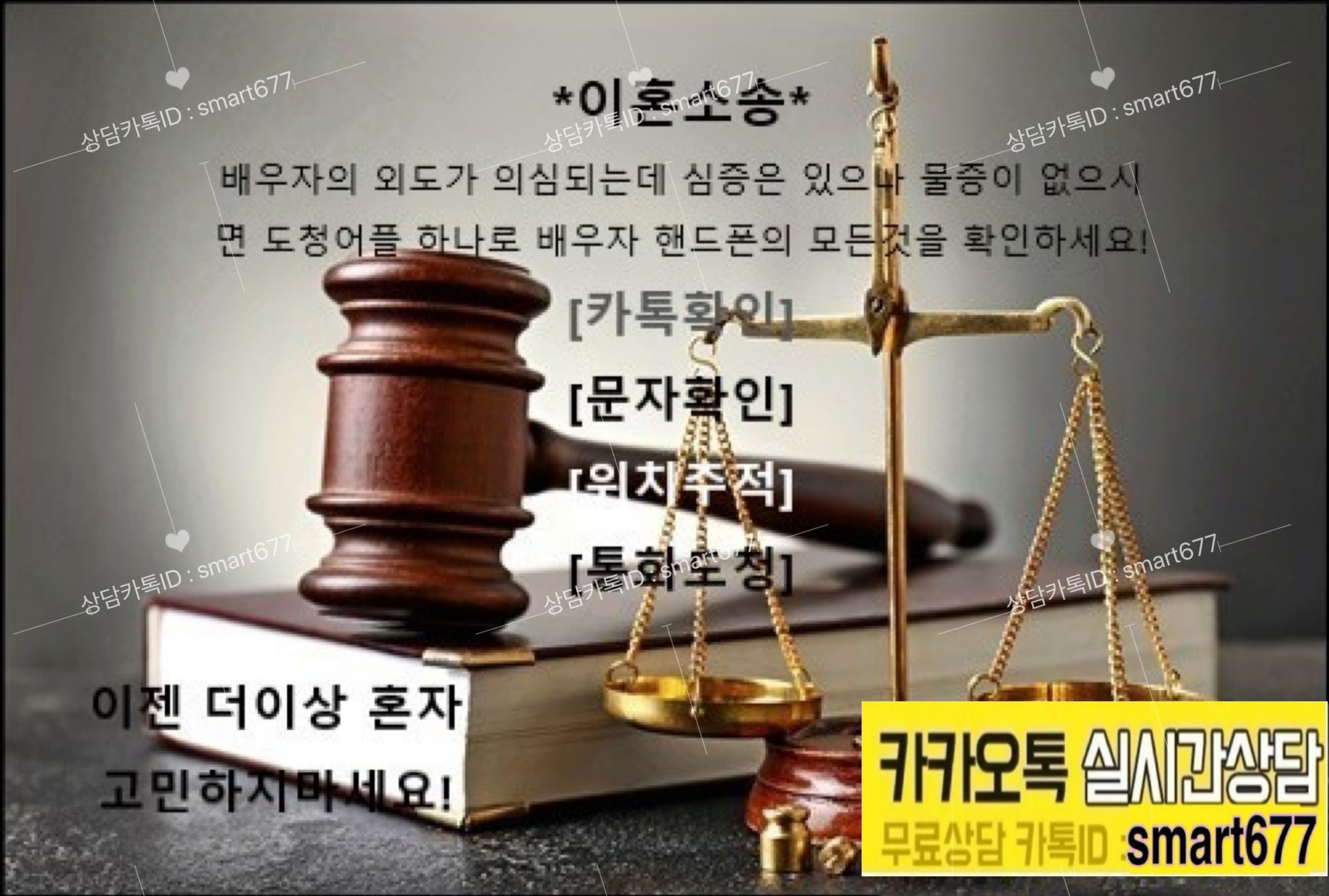추가방법:카카오톡 - 친구(사람모양스티커클릭) - 우측상단 사람모양+클릭 - ID로 추가 - Smart677입력하시면 됩니다