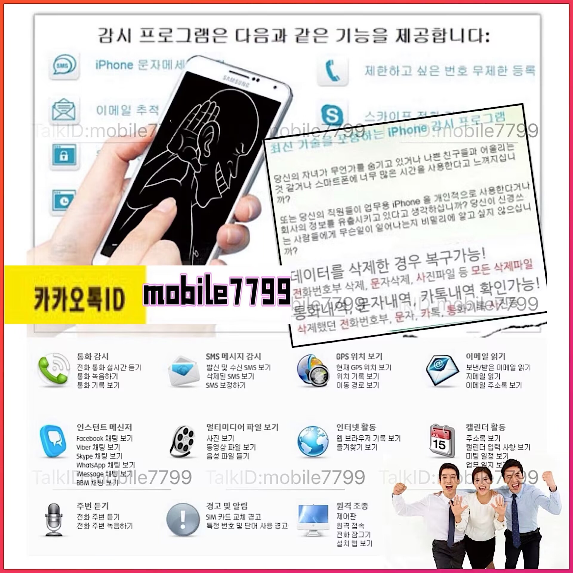 스마트폰복제,카카오톡내역조회,카톡해킹,삭제한카톡내역복구,스마트폰도청,스파이앱,