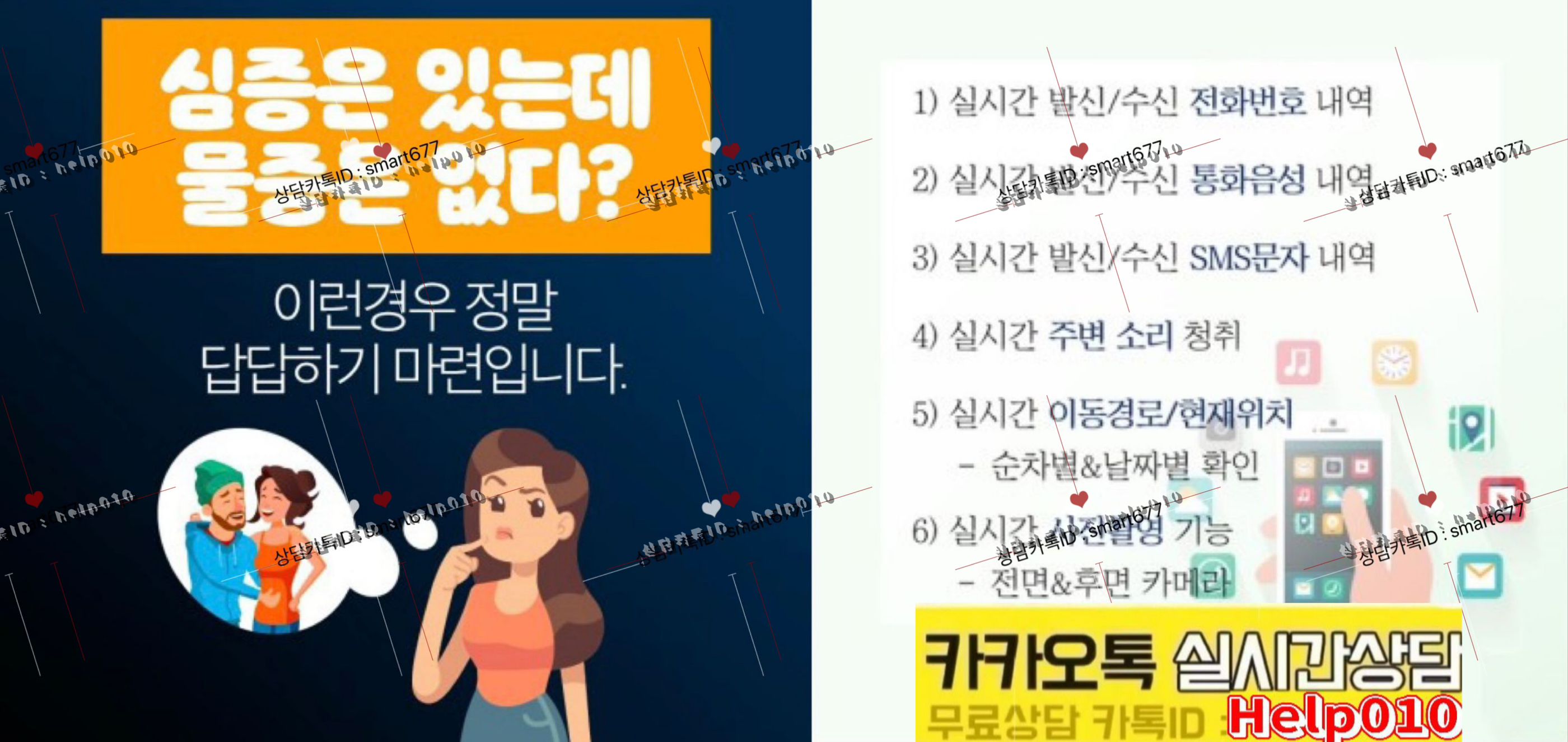 남편카톡보는방법카톡ID:help010외도상담/위치추적도청/인스타해킹.문자통화내역조회/배우자카톡확인 스마트폰흥신소 통화내용청취.주변영상확인※문자발신추적.스파이앱팝니다/삭제된카톡조회