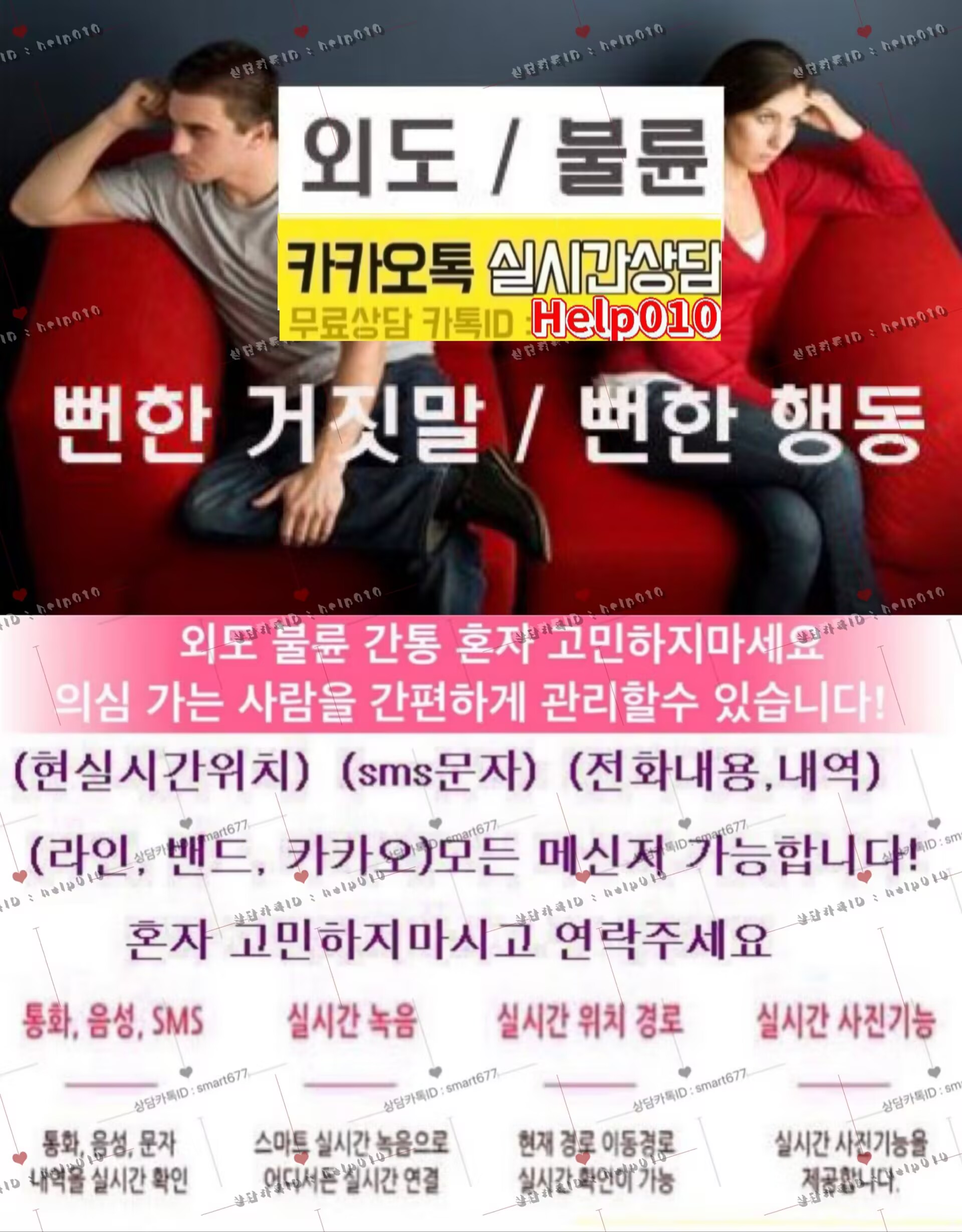 배우자휴대폰도청⭐카톡ID:Help010⭐남편스마트폰복제#불륜증거#위치추적#아내통화내역조회#외도증거수집#카톡해킹#페이스북해킹#여자친구카톡내역조회#남자친구카톡해킹#카톡확인#카톡내역복구#스파이앱#위치추적#감시카메라#핸드폰도청