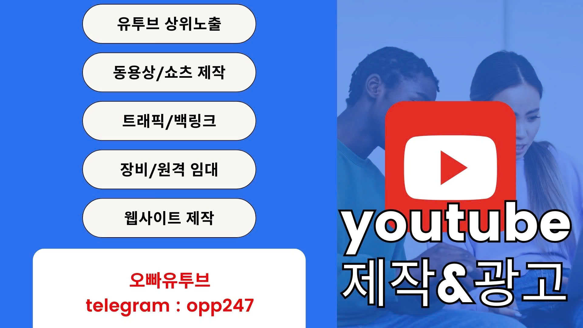 안녕하세요 마케팅 트래픽 원격 서버 등 다양한 일을 한번에 도움을 드릴수있는 오빠튜브 입니다