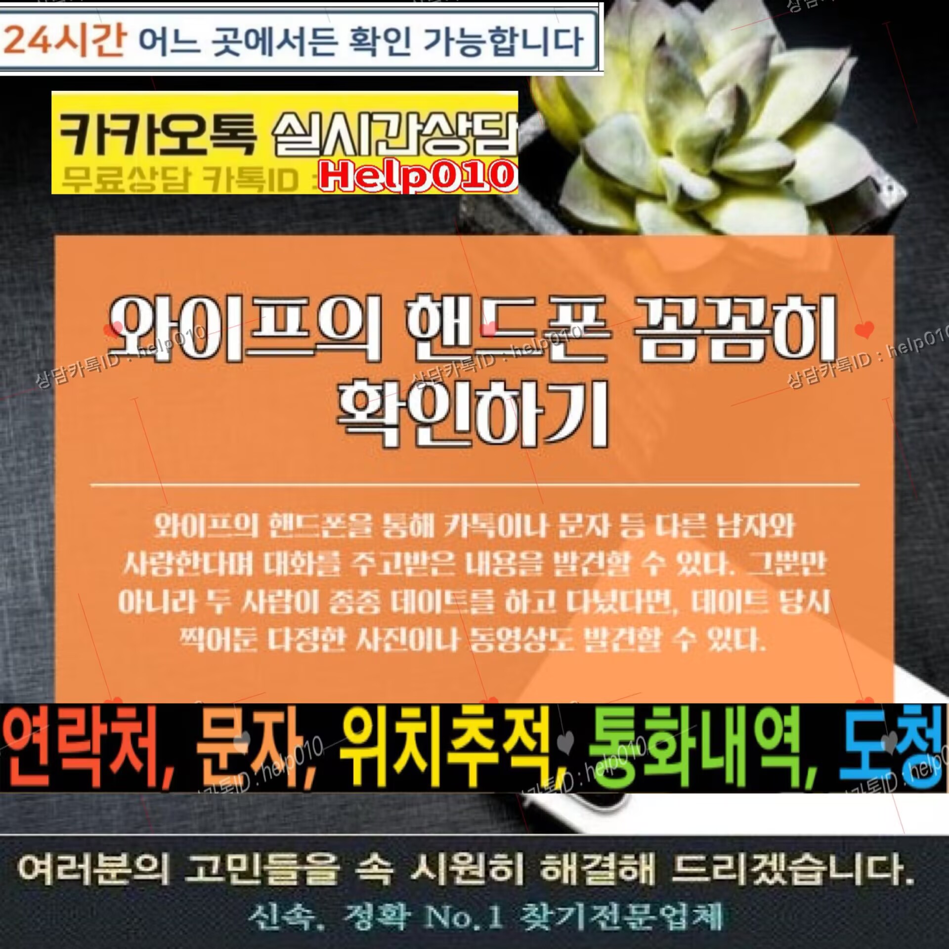 배우자핸드폰도청#휴대폰복제#카톡ID:Help010복제폰#쌍둥이폰#위치추적#카톡해킹#스마트폰해킹#바람난배우자#이혼소송#외도증거수집#카톡내용확인#통화내역확인#문자및메신저확인#사진동영상확인#통화녹음#결제내역및영수증조회#핸드폰백업및데이터복구#스파이앱 등 다양한 기능들로 배우자 핸드폰의 모든것을 실시간 확인해보세요.
