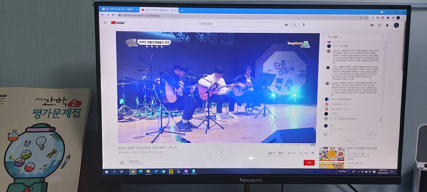 직접 가지 않고도 공연을 볼수있다는게 요즘같은 시대에 정말 좋았고 꼭 이처럼 수행평가가 아니더라도 잠깐정도는 볼수있겠다는 생각이 들만큼 나름 제대로된 라이브 방송이였고 좋았던점은 감자밴드가 비교적 쪽에 나왔다는것과 방송 운영이 잘되었다는거고 아쉬웠던점은 댓글 상태가 그렇게 좋지 못했다는것 같다