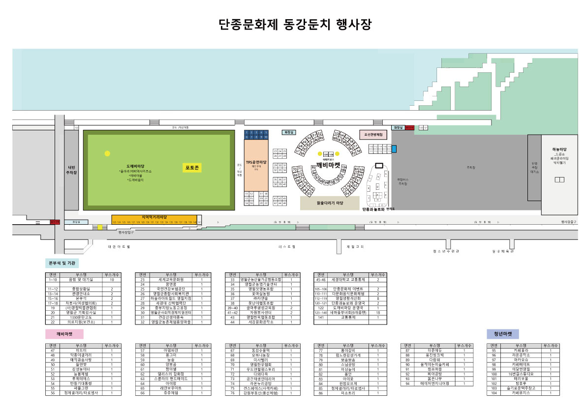· 부스위치는 영월문화관광재단에서 운영방안 및 방문객 동선을 고려한 임의 결정되었습니다(공고문참고)