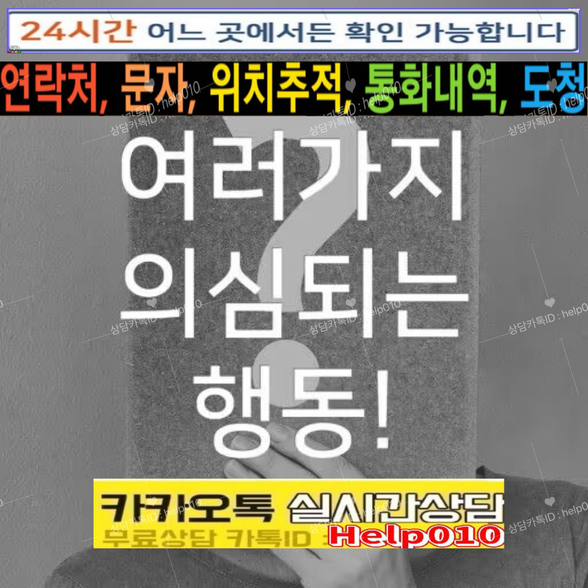 [대한민국NO.1모바일흥신소]카톡ID:Help010배우자외도증거수집 핸드폰복제,위치추적 문자내역조회*카톡내용복구*통화내역확인*복제폰 쌍둥이폰전문흥신소